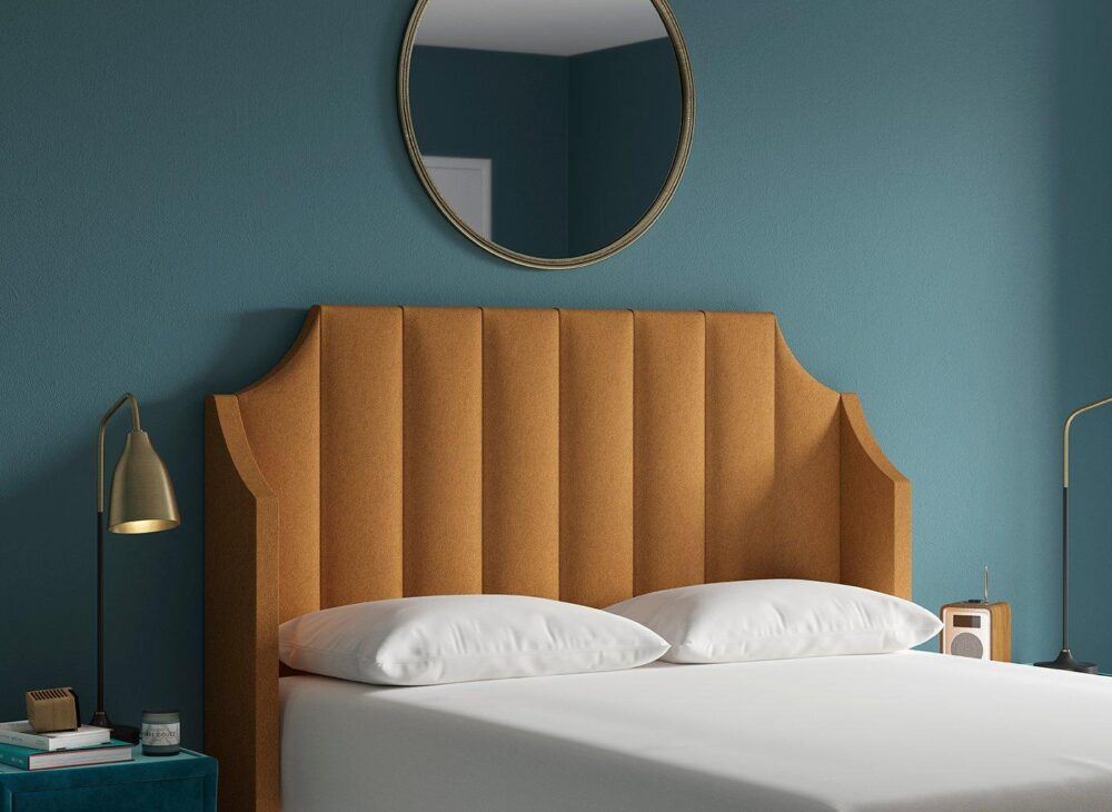 Take this opportunity to relish in the pairing of our opulent TheraPur® Holly headboard with deep cool blue walls. Paired with gold-tone accents, it’s a stunning choice that elevates classic yellow to a new level.
